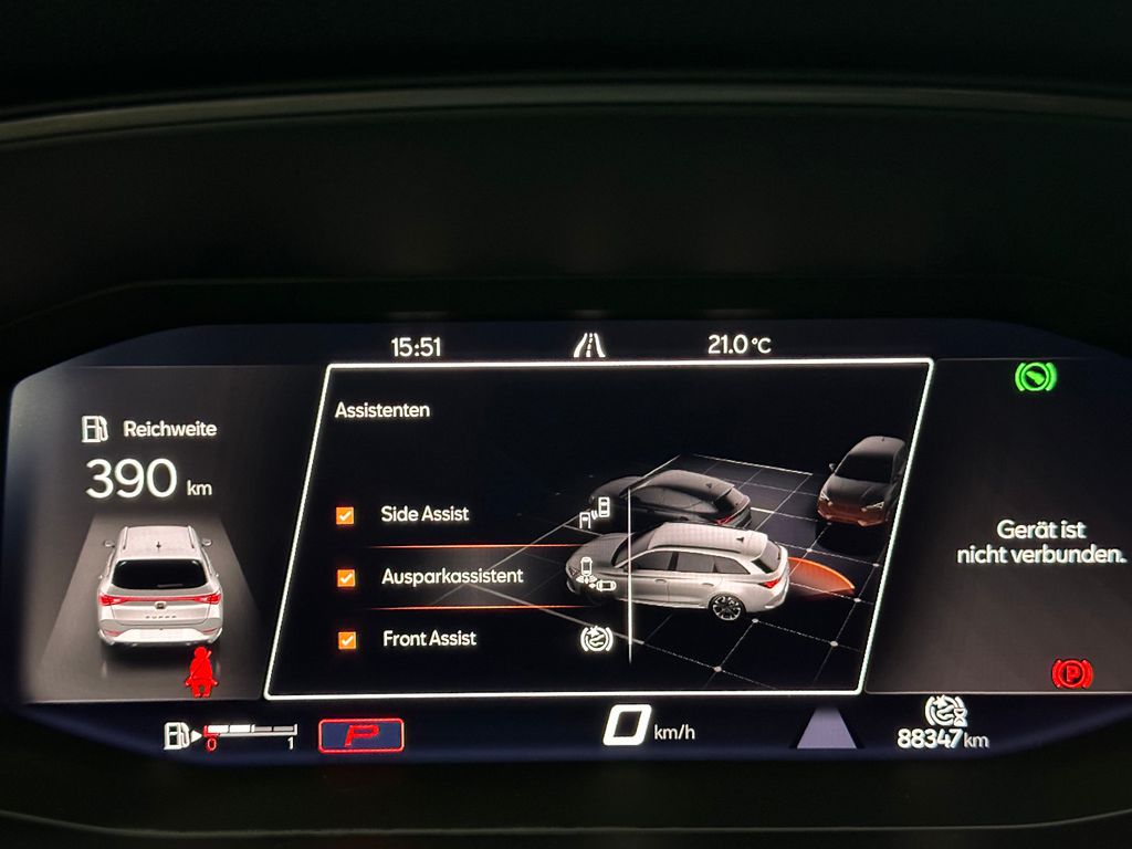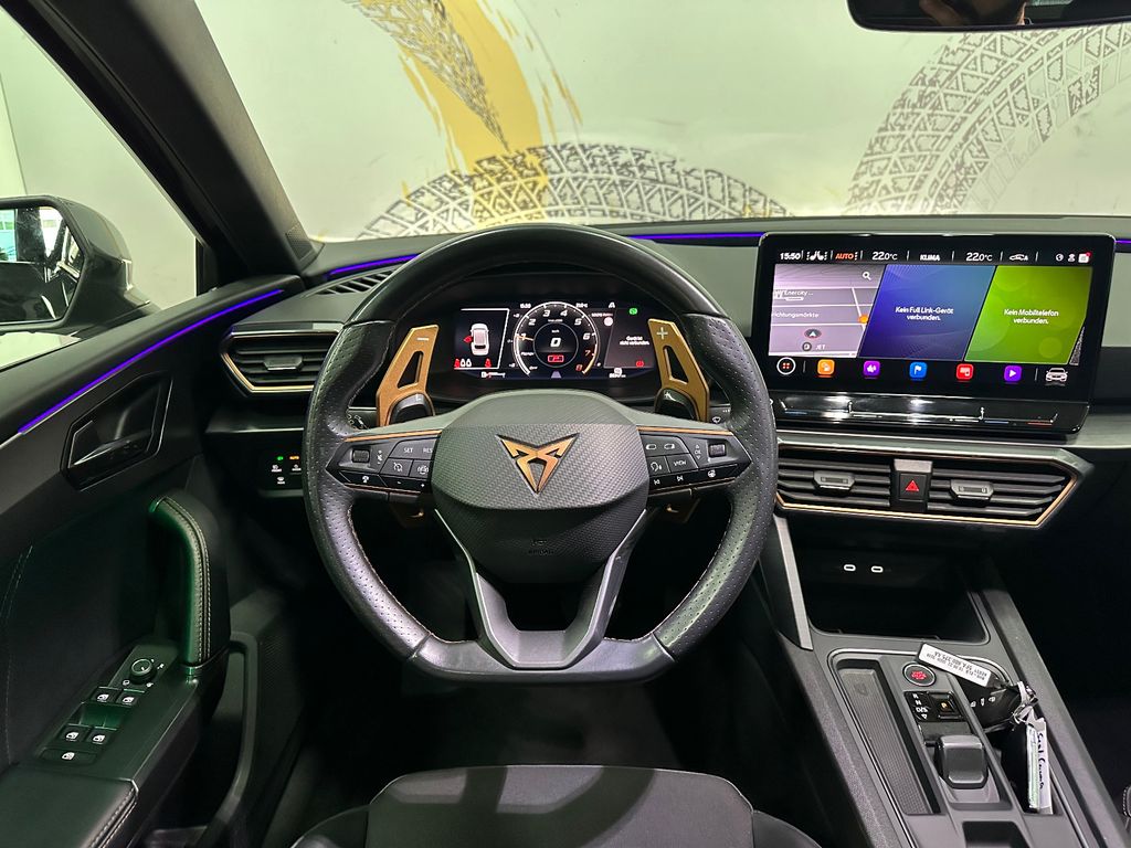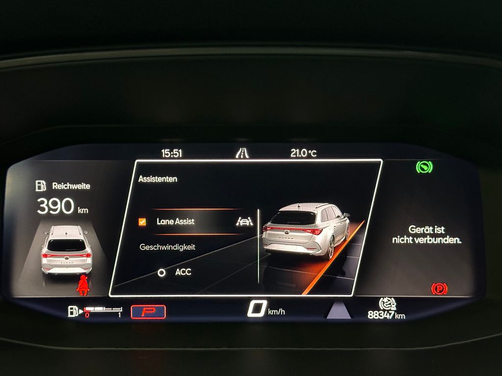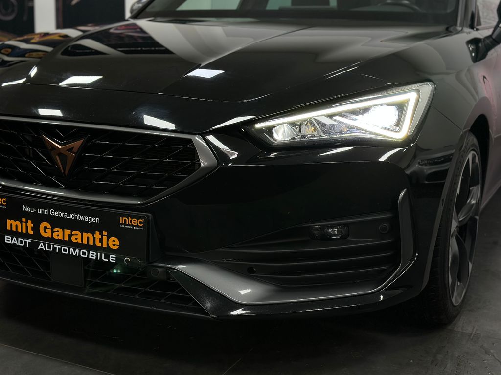 6 Lautsprecher, Airbag Beifahrerseite abschaltbar, Airbag Fahrer-/Beifahrerseite, Antriebs-Schlupfregelung (ASR), Außenspiegel elektr. verstell-, heiz- und anklappbar mit Spiegelabsenkung und Welcome Light, Blinkleuchten LED in Außenspiegel integriert, Dachreling schwarz, hochglänzend, Doppeltonhorn, Einstiegsleisten (Aluminium) vorn, beleuchtet, Fahrassistenz-System: Fahrprofilauswahl (CUPRA Drive Profile), Fensterheber elektrisch vorn + hinten mit Komfortschaltung, Fensterzierleisten schwarz hochglänzend, Gepäckraumabdeckung / Rollo, Heckleuchten LED mit dynamischem Blinklicht, Heckleuchten Voll-LED mit Lichtband (Infinite Light), Isofix-Aufnahmen für Kindersitz an Rücksitz, Karosserie: 5-türig, Klimaanlage Climatronic 3-Zonen, Kombiinstrument digital (virtual cockpit), Kopf-Airbag-System, Laderaumboden variabel und herausnehmbar, Lendenwirbelstütze Sitz vorn links, verstellbar, Lendenwirbelstütze Sitz vorn rechts, verstellbar, Licht- und Sicht-Paket, LM-Felgen, Mild-Hybrid 110 kW (Motor 1,5 Ltr. - 110 kW eTSI), Mittelarmlehne hinten, Mittelkonsole vorn mit Mittelarmlehne, Becherhalter, Ablagebox und Luftausströmer hinten, Mobile Online Dienste Cupra Connect, Notrufsystem, Parkbremse elektrisch, Radioempfang digital (DAB+), Rücksitzlehne geteilt/klappbar (1/3-2/3), Rücksitzlehnen umklappbar mit Fernentriegelung im Kofferraum, Schadstoffarm nach Abgasnorm Euro 6d, Seitenairbag, Seitenairbag vorn mitte (Central Airbag), Seitenscheiben hinten und Heckscheibe abgedunkelt, Sitz vorn links höhenverstellbar, Sitz vorn rechts höhenverstellbar, Sitzbezug / Polsterung: Stoff, Sonnenblende links mit Spiegel (beleuchtet), Sonnenblende rechts mit Spiegel (beleuchtet), Sport-Schalensitze vorn mit integrierten Kopfstützen, Sprachsteuerungs-System, Start/Stop-Anlage, Steckdose (12V-Anschluß) im Koffer-/Laderaum, USB-Ladeanschlüsse (2-fach, Typ C) für 2.Sitzreihe, USB-Schnittstelle vorn (2-fach, Typ C), Verzurrösen Koffer-/Laderaum, Warnanlage für Sicherheitsgurt-System, Wärmeschutzverglasung