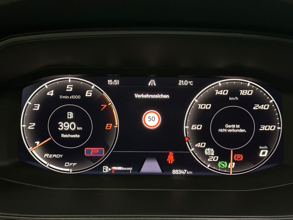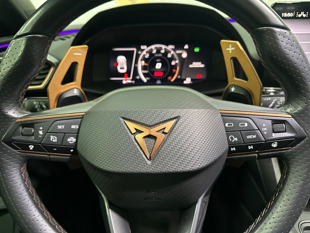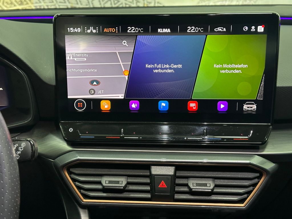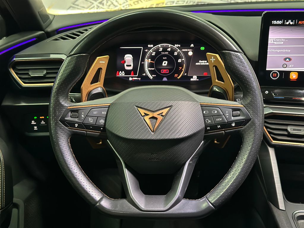 6 Lautsprecher, Airbag Beifahrerseite abschaltbar, Airbag Fahrer-/Beifahrerseite, Antriebs-Schlupfregelung (ASR), Außenspiegel elektr. verstell-, heiz- und anklappbar mit Spiegelabsenkung und Welcome Light, Blinkleuchten LED in Außenspiegel integriert, Dachreling schwarz, hochglänzend, Doppeltonhorn, Einstiegsleisten (Aluminium) vorn, beleuchtet, Fahrassistenz-System: Fahrprofilauswahl (CUPRA Drive Profile), Fensterheber elektrisch vorn + hinten mit Komfortschaltung, Fensterzierleisten schwarz hochglänzend, Gepäckraumabdeckung / Rollo, Heckleuchten LED mit dynamischem Blinklicht, Heckleuchten Voll-LED mit Lichtband (Infinite Light), Isofix-Aufnahmen für Kindersitz an Rücksitz, Karosserie: 5-türig, Klimaanlage Climatronic 3-Zonen, Kombiinstrument digital (virtual cockpit), Kopf-Airbag-System, Laderaumboden variabel und herausnehmbar, Lendenwirbelstütze Sitz vorn links, verstellbar, Lendenwirbelstütze Sitz vorn rechts, verstellbar, Licht- und Sicht-Paket, LM-Felgen, Mild-Hybrid 110 kW (Motor 1,5 Ltr. - 110 kW eTSI), Mittelarmlehne hinten, Mittelkonsole vorn mit Mittelarmlehne, Becherhalter, Ablagebox und Luftausströmer hinten, Mobile Online Dienste Cupra Connect, Notrufsystem, Parkbremse elektrisch, Radioempfang digital (DAB+), Rücksitzlehne geteilt/klappbar (1/3-2/3), Rücksitzlehnen umklappbar mit Fernentriegelung im Kofferraum, Schadstoffarm nach Abgasnorm Euro 6d, Seitenairbag, Seitenairbag vorn mitte (Central Airbag), Seitenscheiben hinten und Heckscheibe abgedunkelt, Sitz vorn links höhenverstellbar, Sitz vorn rechts höhenverstellbar, Sitzbezug / Polsterung: Stoff, Sonnenblende links mit Spiegel (beleuchtet), Sonnenblende rechts mit Spiegel (beleuchtet), Sport-Schalensitze vorn mit integrierten Kopfstützen, Sprachsteuerungs-System, Start/Stop-Anlage, Steckdose (12V-Anschluß) im Koffer-/Laderaum, USB-Ladeanschlüsse (2-fach, Typ C) für 2.Sitzreihe, USB-Schnittstelle vorn (2-fach, Typ C), Verzurrösen Koffer-/Laderaum, Warnanlage für Sicherheitsgurt-System, Wärmeschutzverglasung