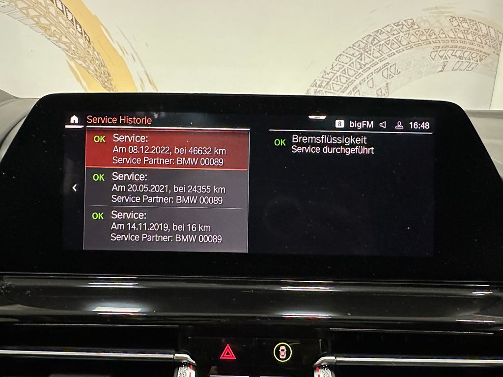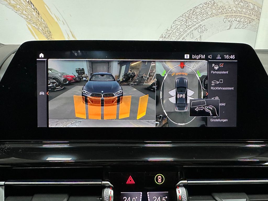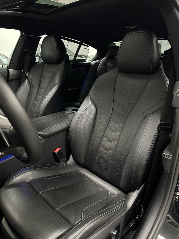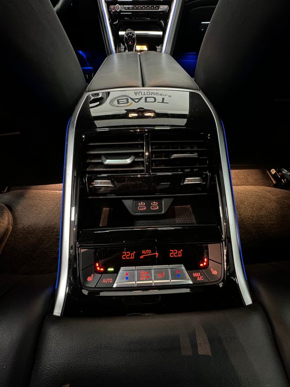 Aktive Sitzbelüftung vorn, DAB-Tuner (Radioempfang digital), Frontscheibe (Ausführung: Klimakomfort), Fzg. ohne Modell-Schriftzug, Innenausstattung: Erweiterte Lederausstattung BMW Individual Leder Merino (Schwarz), Innenausstattung: Individual Interieurleisten Pianolack, Innovations-Paket, Klimaautomatik 4-Zonen mit autom. Umluft-Control, LM-Felgen vorn/hinten: 8x20 / 9x20 (Vielspeiche 729 M, Bicolor), Metallic-Lackierung, Panoramadach (Glas), Soft-Close-Automatik für Türen, Sonnenschutzrollo an Heckscheibe elektrisch, Sonnenschutzrollo Heckscheibe elektr. und Seitenscheiben mech., Sound-System Harman-Kardon, TV-Funktion Plus bei Navigationssystem, Universalfernbedienung integriert, Wärme-Komfort-Paket vorn