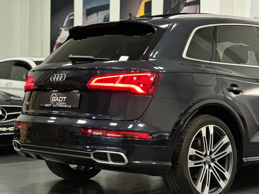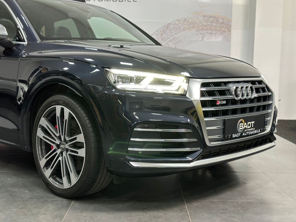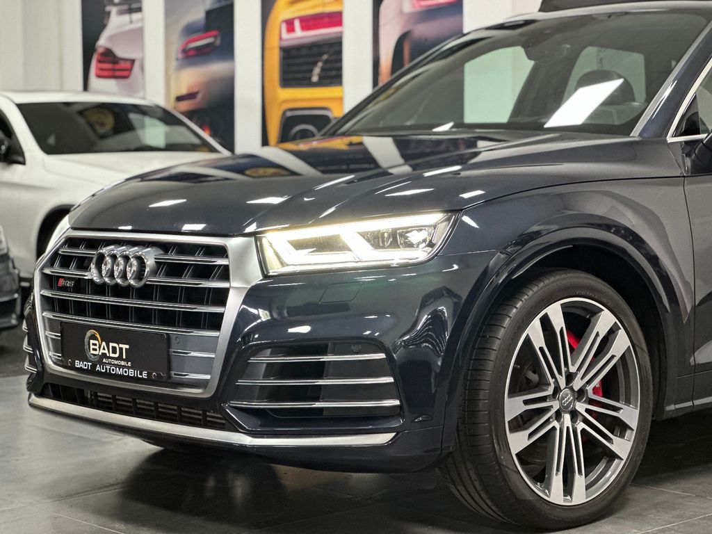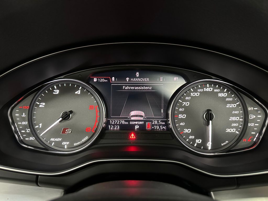 Ablage- und Gepäckraum-Paket, Akustikglas Türscheiben vorn, Audi connect (Internetbasierende Dienste), Außenspiegel elektr. verstell-, heiz- und anklappbar, Bremssättel Rot lackiert, Einparkhilfe vorn und hinten, optisch (APS Plus), Fahrassistenz-System: Anfahr-Assistent (hold assist), Fahrassistenz-System: Verkehrszeichenerkennung, Fahrwerk mit Dämpferregelung (Magnetic Ride), Frontkamera (Scheibe), Head-up-Display, Innenspiegel mit Abblendautomatik, Lenkrad (Sport/Leder - 3-Speichen, unten abgeflacht) mit Multifunktion plus, LM-Felgen 8,5x21 (5-Doppelspeichen, V-Design, kontrastgrau, teilpoliert), LM-Felgen 8x20 (5-Doppelspeichen, Stern-Design, für Winterbereifung), Matrix-LED-Scheinwerfer, Multi-Media-Interface MMI Navigation, Panoramadach vorn elektrisch, hinten fest, Perleffekt-Lackierung, Rückfahrkamera, Sound-System DSP / Audi Sound-System, Verglasung hinten abgedunkelt (Privacyverglasung)