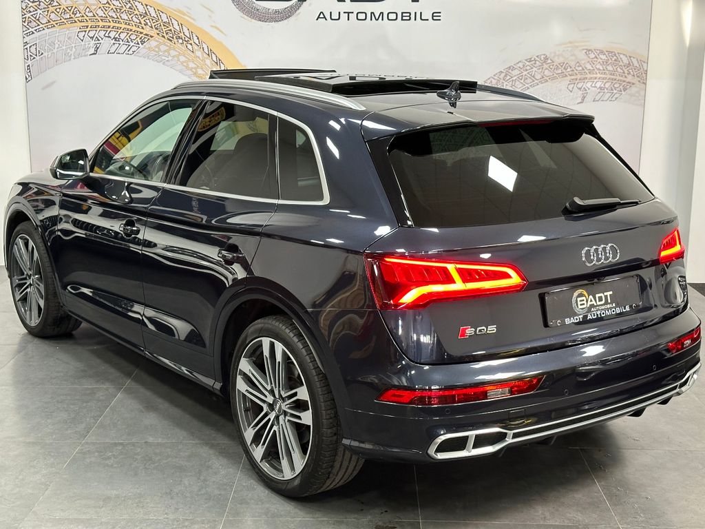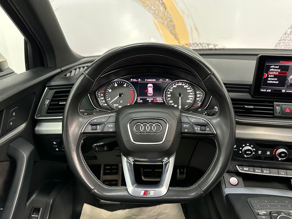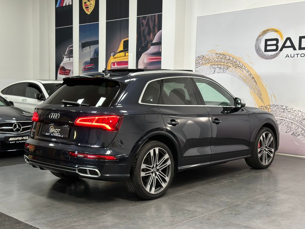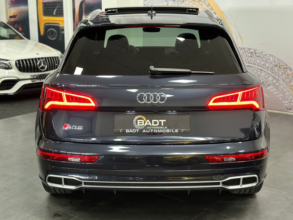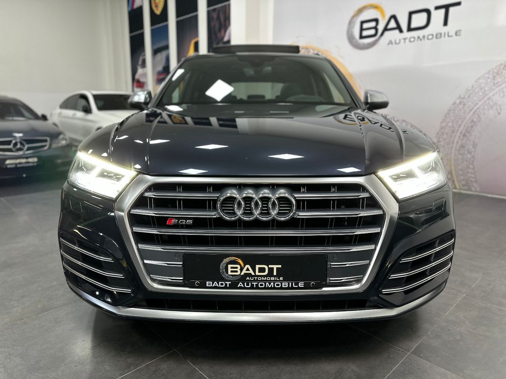 Ablage- und Gepäckraum-Paket, Akustikglas Türscheiben vorn, Audi connect (Internetbasierende Dienste), Außenspiegel elektr. verstell-, heiz- und anklappbar, Bremssättel Rot lackiert, Einparkhilfe vorn und hinten, optisch (APS Plus), Fahrassistenz-System: Anfahr-Assistent (hold assist), Fahrassistenz-System: Verkehrszeichenerkennung, Fahrwerk mit Dämpferregelung (Magnetic Ride), Frontkamera (Scheibe), Head-up-Display, Innenspiegel mit Abblendautomatik, Lenkrad (Sport/Leder - 3-Speichen, unten abgeflacht) mit Multifunktion plus, LM-Felgen 8,5x21 (5-Doppelspeichen, V-Design, kontrastgrau, teilpoliert), LM-Felgen 8x20 (5-Doppelspeichen, Stern-Design, für Winterbereifung), Matrix-LED-Scheinwerfer, Multi-Media-Interface MMI Navigation, Panoramadach vorn elektrisch, hinten fest, Perleffekt-Lackierung, Rückfahrkamera, Sound-System DSP / Audi Sound-System, Verglasung hinten abgedunkelt (Privacyverglasung)